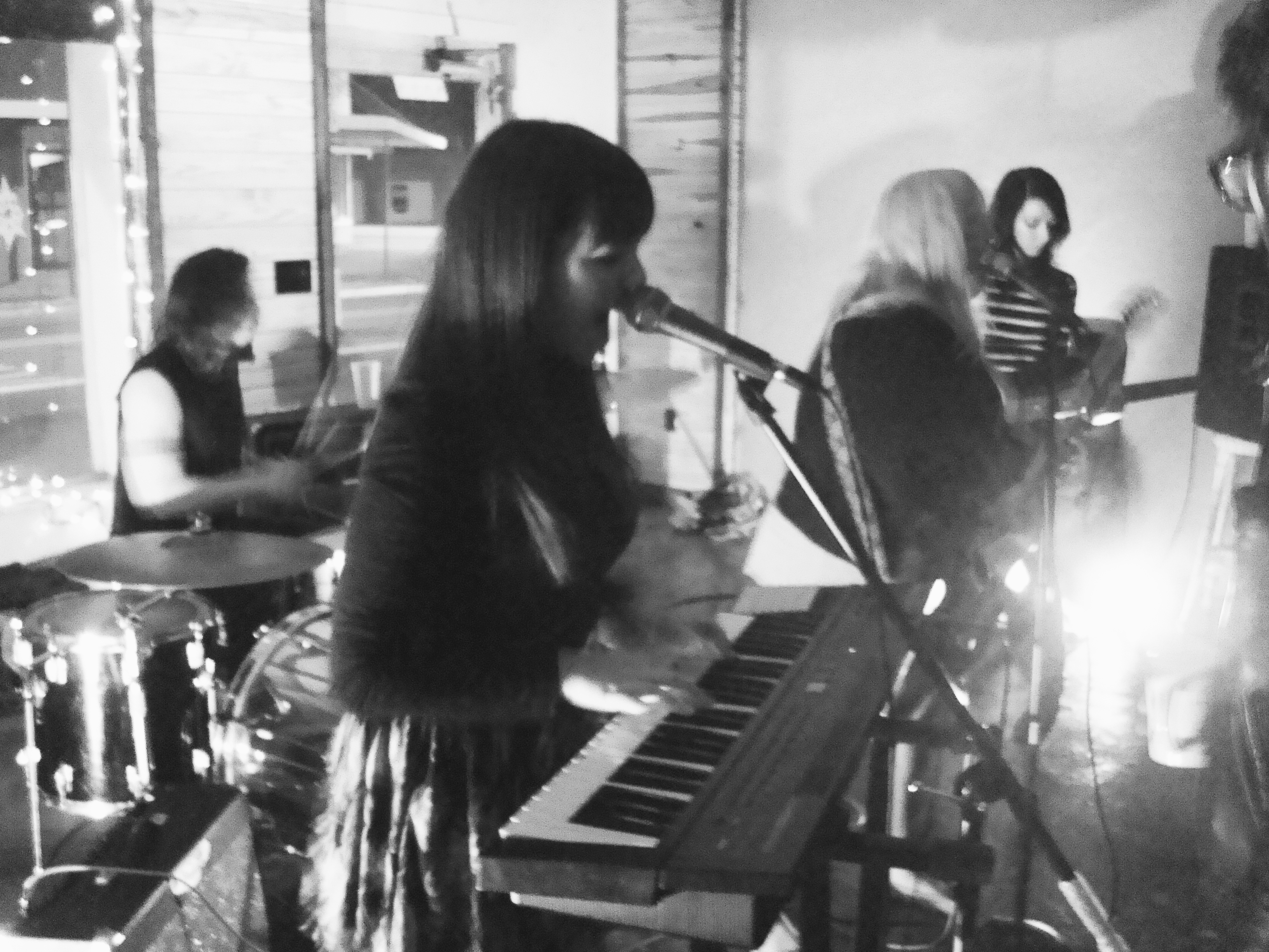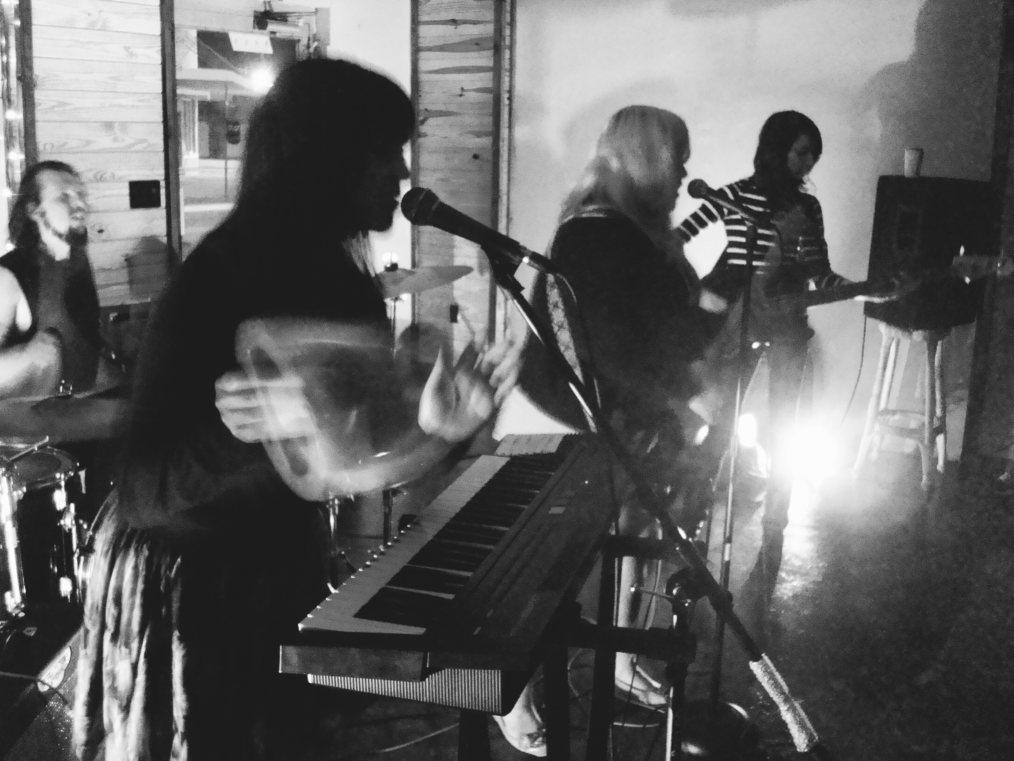 A couple of night ago (on the 5th) The Porcharitas played our first out of town show at The Black Owl, in Florence, Alabama. Our friends Katie and Jamie (of The Pine Hill Haints and loads of other bands) own the screen print shop. They are SUPER talented in everything they do (music, design, printing, drawing, etc). Anyway, we were thrilled to play with some super fun bands (The Vignettes, William Stull, and Nightmare Boyzzz)…and to an audience that wasn’t made up of 75% of our close friends.