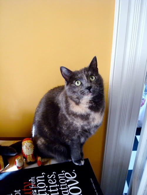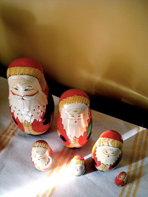 Bathroom and Santas! The bathroom is (finally) completely painted. It’ll remain the ‘swiss coffee’ color until I can justify spending $850 on wallpaper. Which I will…after we get a sink, bathtub, and washer/dryer. WE DO HAVE A WORKING TOILET now in the bathroom. This is so wonderful. No more midnight trips (literally…I’ve stubbed my toe about 20+ times) up the stairs in the freezing cold just to pee. I’ve also actually fallen asleep on the upstairs toilet waiting for my pee to lure itself out of my warm bladder and into the freezing porcelain.