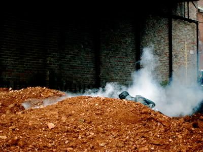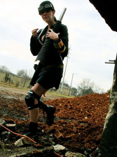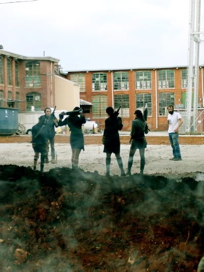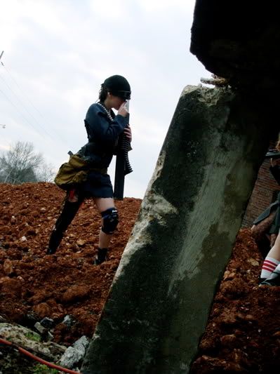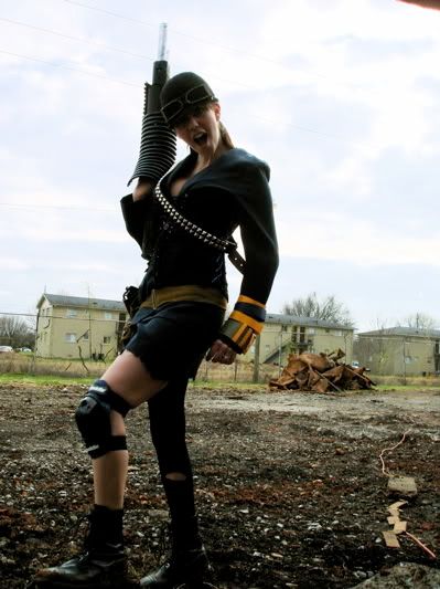 Yesterday, we filmed what will soon become the trailer for the event. The weather was perfect for dressing up like a sex driven woman warrior and running around in the dirt. I felt like a kid again, but this time with more toys – fog machines, shop vacs, guns, and a video camera.