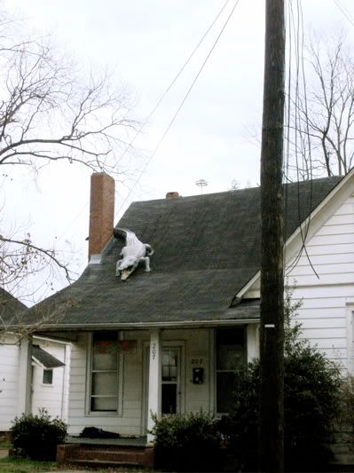 I couldn’t really get a great shot because the people across the street came outside as we were slowing down, but you can kinda see the white alligator on the roof in the second picture…